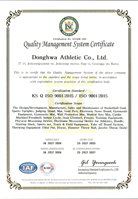 대한농구협회공인, 대한배구협회공인, 한국 산업기술원 K마크 인증 등 품질인증