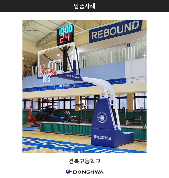 •세계농구연맹(FIBA) 규정에 의한 공인규격농구대로 프로경기 및 대형체육관에서 사용합니다.